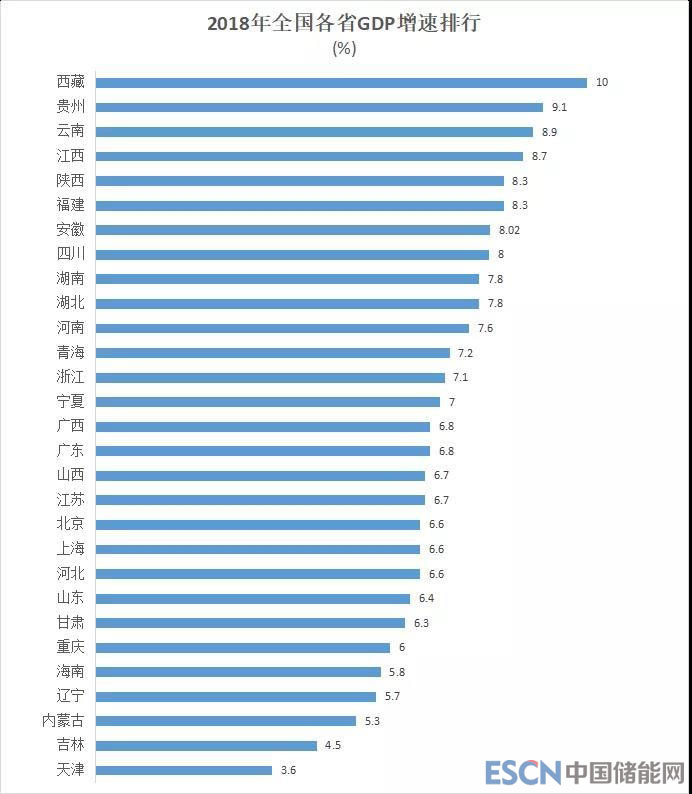 注:以上各省2018年GDP數(shù)據(jù)由官方公布數(shù)據(jù)整理,黑龍江、新疆GDP增速未公布,故未統(tǒng)計(jì)在內(nèi)。