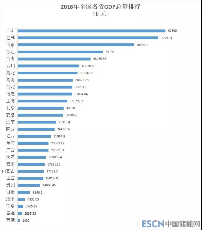 注:以上各省2018年GDP數(shù)據(jù)由官方公布數(shù)據(jù)整理,黑龍江、吉林、新疆GDP總量未公布,故未統(tǒng)計(jì)在內(nèi)。