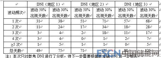 表6 不同地區(qū)光資源法向直接輻射波動頻次出現(xiàn)大數(shù)統(tǒng)計