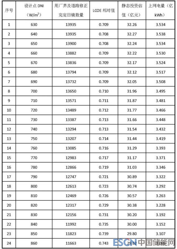 結(jié)論:儲能小時為12h時,具有最優(yōu)的LCOE值,因此,確定參比100MW熔鹽塔式電站方案的設(shè)計點DNI為780W/m2,儲能小時為12h。