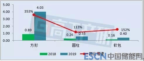 從不同電池形狀來看,2019年1月方形電池裝機(jī)電量約4.03GWh,同比增長(zhǎng)353%;軟包電池裝機(jī)電量約0.40GWh,同比增長(zhǎng)152%;圓柱電池裝機(jī)電量約0.55GWh,同比增長(zhǎng)113%。