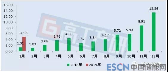 2018-2019年新能源汽車電池裝機(jī)總電量分析(GWh)