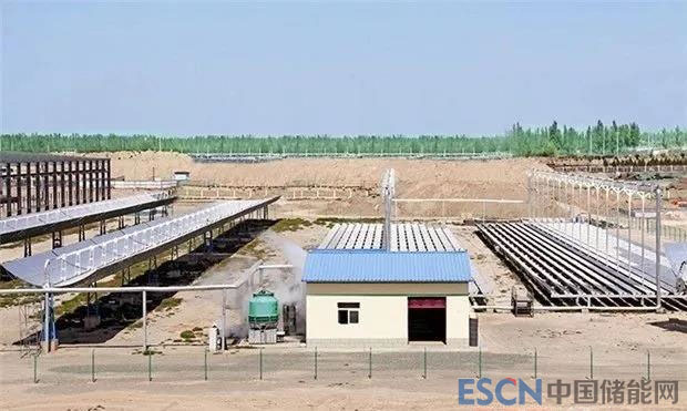 蘭州大成200kW光熱發(fā)電示范項(xiàng)目。圖中左側(cè)為槽式光熱發(fā)電系統(tǒng),右側(cè)為菲涅爾式光熱發(fā)電系統(tǒng)。圖片由作者收集,下同