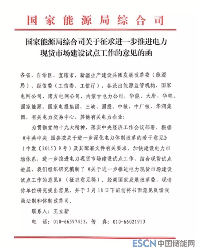 關(guān)于征求進(jìn)一步推進(jìn)電力現(xiàn)貨市場建設(shè)試點(diǎn)工作的意見的函
