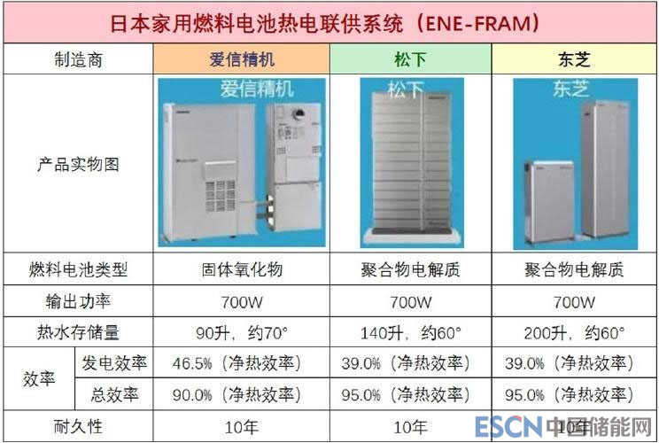 『日本Ene-Farm主要產品及技術指標 圖片源自網絡』