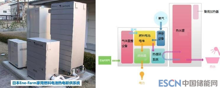 『日本Ene-Farm家用燃料電池熱電聯供系統(tǒng)及結構示意』