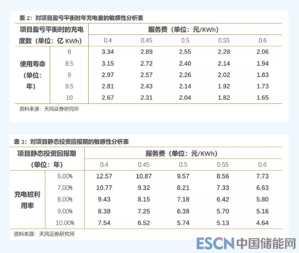 3)充電樁使用壽命8-10年對(duì)應(yīng)的年充電樁建設(shè)投入為0.86-1.07億元,同時(shí)服務(wù)費(fèi)0.4-0.6元/KWh,對(duì)應(yīng)項(xiàng)目盈虧平衡時(shí)的年充電量為1.65-3.34億KWh。