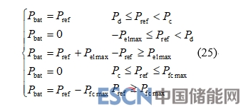 根據(jù)計算得到的蓄電池輸出功率Pbat,將負載需求功率與其相減即可得到電解槽及燃料電池參考功率。