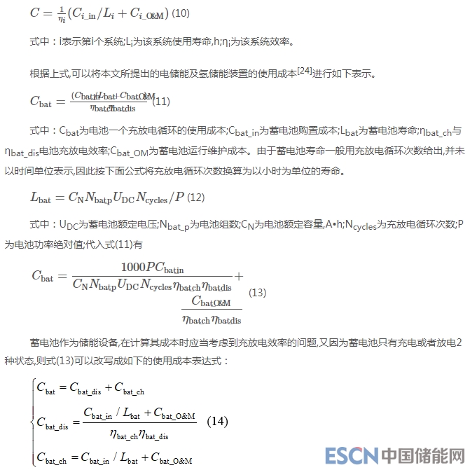 在該系統(tǒng)中,光伏陣列始終工作在最大功率點跟蹤模式,其運行成本固定,當需要儲能系統(tǒng)對光伏與負載之間的功率差額進行補齊或者存儲時,能量管理系統(tǒng)應當評估最方便且使用成本最低的存儲系統(tǒng)。由于本文模型為孤島模型,因此沒有燃料成本,各系統(tǒng)使用成本C僅考慮每個設備的購置成本Cin以及操作和維護成本COM。