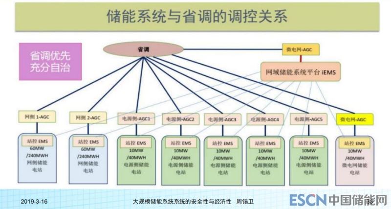 大規(guī)模示范項(xiàng)目,這個(gè)項(xiàng)目目前情況5月底的時(shí)候可能會(huì)有第一個(gè)站單體60兆瓦、240兆瓦時(shí)的,會(huì)整個(gè)調(diào)試完成。大概情況有八個(gè)子系統(tǒng),有兩個(gè)比較大的,都是單體60兆瓦,240兆瓦時(shí),這是整體控制系統(tǒng)的架構(gòu)。