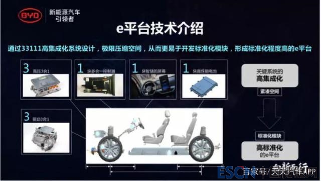 比亞迪e平臺戰(zhàn)略可以用一組代碼般的數(shù)字代替:“33111?!逼渲袃蓚€3指的是驅(qū)動3合1、高壓3合1,三個1分別代指一塊板、一塊屏和一塊電池。