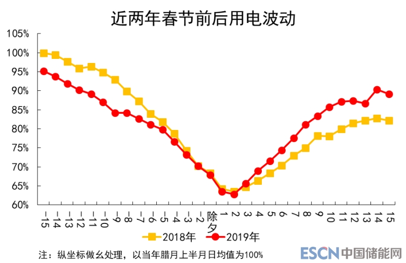 一是下降有所提前。2019年春節(jié)前日發(fā)電量在臘月十五即降至臘月上半月平均值的約94%,大體較往年提前近一周,反映出國民經(jīng)濟運行穩(wěn)中有變、下行壓力較大,信心不足影響市場預(yù)期,部分工業(yè)生產(chǎn)停工較早。