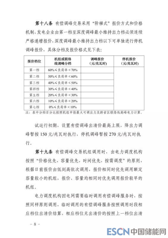 調(diào)整之后,調(diào)峰方面:設(shè)置有償調(diào)峰出清價(jià)最高上限,降出力調(diào)峰暫按 150元/MWh執(zhí)行,停機(jī)調(diào)峰暫按 270元/MWh執(zhí)行。