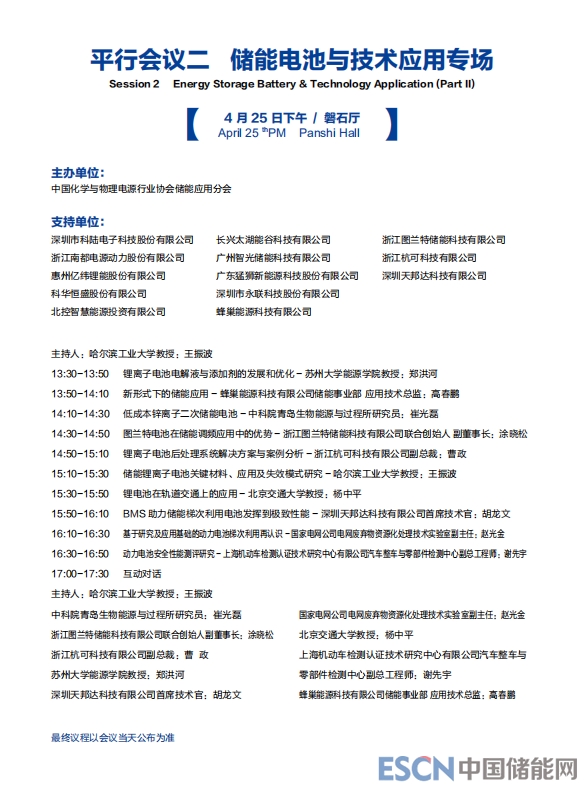 以下是《儲(chǔ)能電池與技術(shù)應(yīng)用專場(chǎng)二》議程內(nèi)容,其他各專場(chǎng)議程組委會(huì)將相繼發(fā)布,敬請(qǐng)關(guān)注!