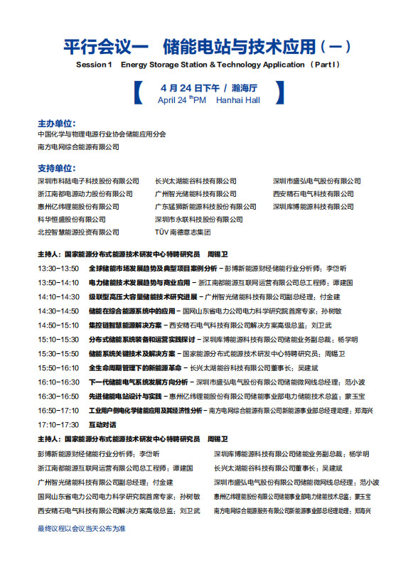 以下是《儲能電站與技術(shù)應(yīng)用專場一》議程內(nèi)容,其他各專場議程組委會將相繼發(fā)布,敬請關(guān)注!