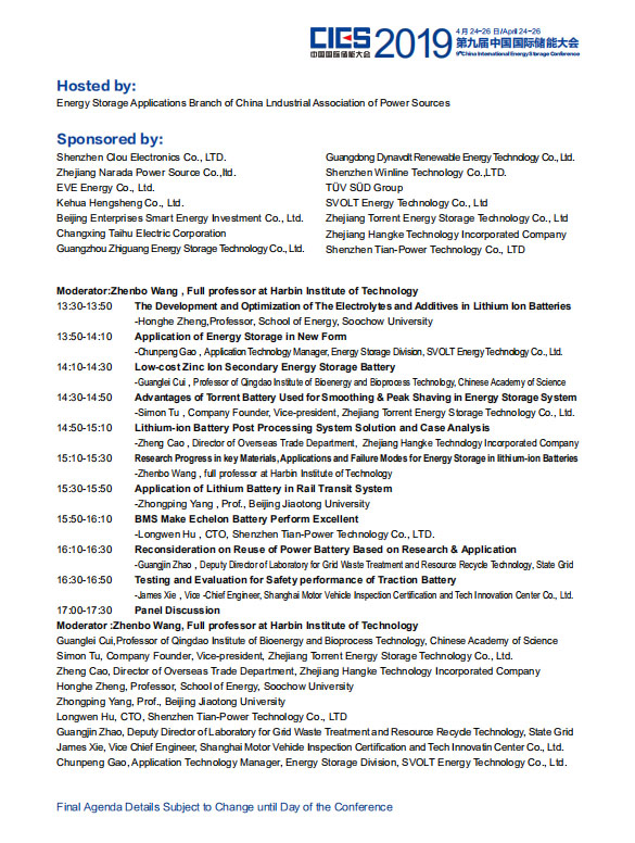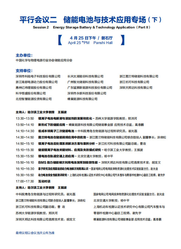 以下是《儲能電池與技術應用專場(下)》議程內(nèi)容,其他各專場議程組委會將相繼發(fā)布,敬請關注!
