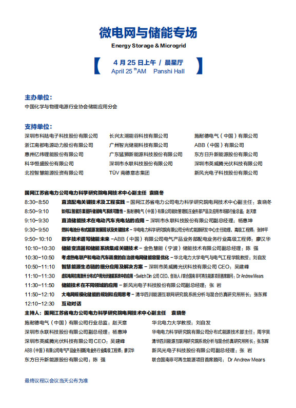 以下是《微電網(wǎng)與儲能專場》議程內(nèi)容,其他各專場議程組委會將相繼發(fā)布,敬請關(guān)注!