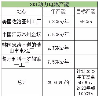 去年8月,SKInnovation與北京汽車、北京電子控股合作在江蘇常州成立了動(dòng)力電池工廠,產(chǎn)能規(guī)劃為7.5GWh。