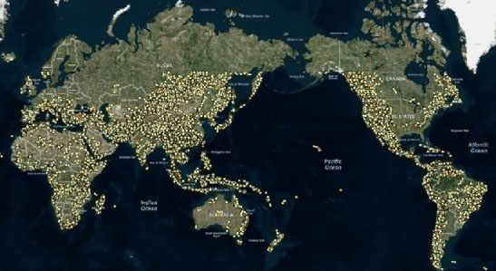 分布在世界各地的潛在徑流式抽水蓄能地點(diǎn)