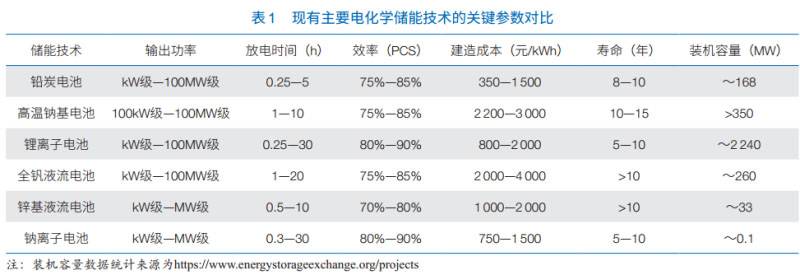 在能源革命的黃金時(shí)代,各類(lèi)電化學(xué)儲(chǔ)能技術(shù)需針對(duì)其細(xì)分市場(chǎng)進(jìn)行差異化發(fā)展。然而無(wú)論對(duì)于哪一種儲(chǔ)能技術(shù),其必須滿足?3?個(gè)基本要求:安全性高,全生命周期的性價(jià)比高,以及全生命周期的環(huán)境負(fù)荷低。目前,技術(shù)成熟度較高的鋰離子電池、全釩液流電池和鉛炭電池等電化學(xué)儲(chǔ)能技術(shù)都基本實(shí)現(xiàn)市場(chǎng)運(yùn)營(yíng),在不斷發(fā)展的能源格局中迭代發(fā)展,其基本技術(shù)參數(shù)列于表?1。在未來(lái)?20?年內(nèi),這些技術(shù)有望占領(lǐng)絕大部分電化學(xué)儲(chǔ)能市場(chǎng)。