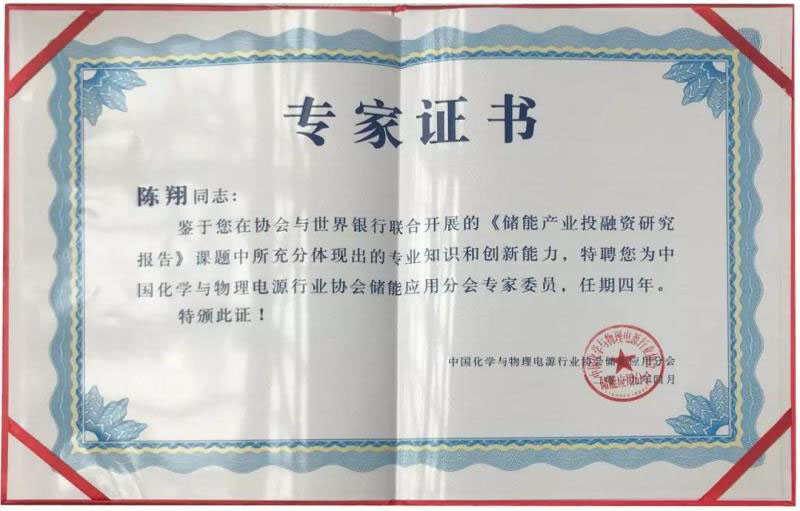 大會期間,億緯鋰能儲能事業(yè)部總經(jīng)理陳翔先生還收到了來自主辦方的一份特殊禮物。鑒于陳總在協(xié)會與世界銀行聯(lián)合開展的《儲能產(chǎn)業(yè)投融資研究報告》課題中所充分體現(xiàn)出的專業(yè)知識和創(chuàng)新能力,中國化學(xué)與物理電源行業(yè)協(xié)會儲能應(yīng)用分會特聘其為專家委員,任期四年。這是儲能行業(yè)對億緯鋰能及陳總個人莫大的肯定和認(rèn)可,可喜可賀。