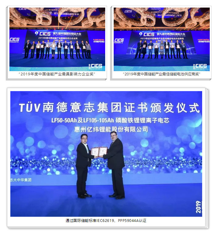 4月24日晚,在大會舉行的2019年度中國儲能產(chǎn)業(yè)最具影響力系列評選活動中,億緯鋰能榮獲“2019年度中國儲能產(chǎn)業(yè)最具影響力企業(yè)獎”、“2019年度中國儲能產(chǎn)業(yè)最佳儲能電池供應(yīng)商獎”兩項(xiàng)大獎;并獲得了TüV 南德意志集團(tuán)為公司鋰離子電芯頒發(fā)的證書,成為了當(dāng)晚耀眼的明星企業(yè)。