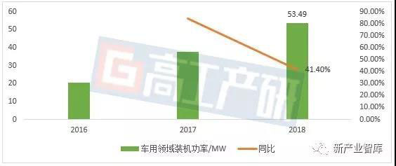 高工產(chǎn)研氫電研究所(GGII)數(shù)據(jù)顯示,2018年中國氫燃料電池在車用領域的裝機功率為53.49MW,同比增長41.40%。