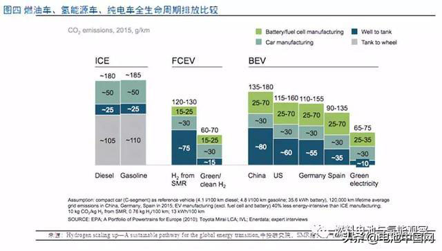 減排:氫燃料電池的反應(yīng)方程式非常簡單:氫氣+氧氣→水。不僅沒有氮氧化物這種有毒氣體,連二氧化碳都沒有。當然,與電動車碳排放的爭議相似,從全生命周期的角度來看,發(fā)電或制氫是免不了有碳排放的。目前的主流觀點是:即便是考慮70%的火電,純電動車的碳排放還是優(yōu)于燃油車,氫燃料電池車則與純電動相當或更好。