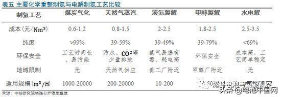 其中氯堿副產(chǎn)品制氫,由于是在現(xiàn)有氯堿工業(yè)體系中,收集原先直接排掉的副產(chǎn)品氫氣,對資源、環(huán)境不增加任何新的負擔,且成本適中(1.3-1.5元/m3),所制取的氫氣純度高達99.99%,是目前較為適宜的制氫方式。但此種制氫方式受規(guī)模所限,無法滿足遠期氫能源車放量后的需求。長期來看,綜合考慮環(huán)保、成本等因素,除氯堿、電解制氫外的氫產(chǎn)能應(yīng)由化學(xué)重整制氫工藝滿足。