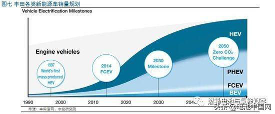 市場層面上,即使在目前氫燃料電池技術(shù)領(lǐng)先的豐田的遠期戰(zhàn)略規(guī)劃中,各類技術(shù)也都有