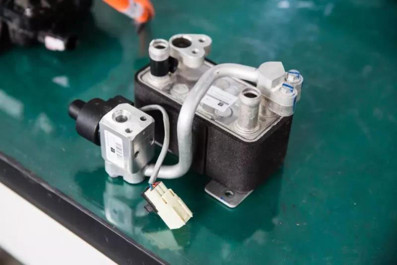 在冷卻方式上,比亞迪在電池內(nèi)增加了散熱回路,通過板式換熱器與空調(diào)回路相連,電池進(jìn)出水和電池級(jí)耳處都布有溫度傳感器,結(jié)合電池溫度實(shí)時(shí)調(diào)節(jié)空調(diào)壓縮機(jī)的功率來控制電池進(jìn)水溫度及流量,以此來控制電池溫度在適宜工作溫度。