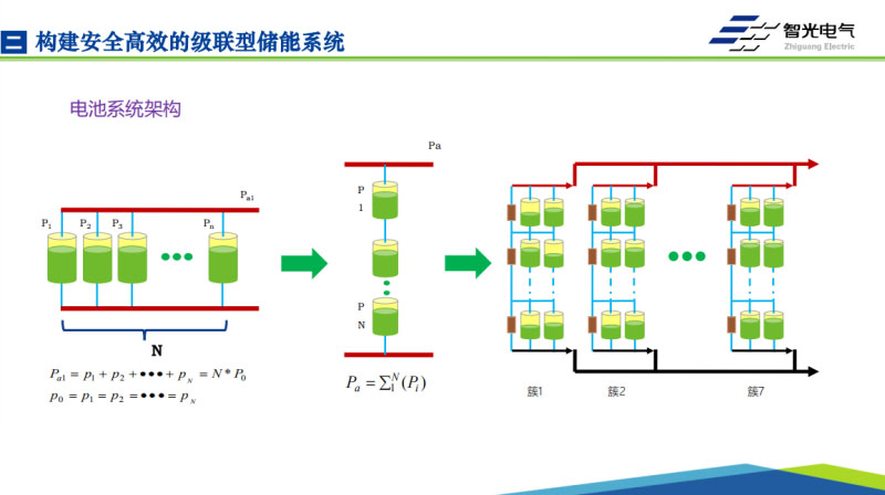 在整個級聯(lián)儲能系統(tǒng)開發(fā)研制過程中,我們加入了一個電池簇的功率控制技術。大家都知道,在我們現(xiàn)有的第一儲能技術路線里頭,我們的單個電池包都是有很多簇的電池來組成的,這個電池包共用的是同一臺PCS,比如大家常見的500千瓦或者600千瓦的PCS,當通過PCS把交流的功率注入到這樣的電池包里的時候,這個功率電流在不同的電池簇之間進行分配的時候,依靠的僅僅是直流系統(tǒng)、電池系統(tǒng)它的內(nèi)部的電阻來進行的分配,內(nèi)部是不可控的,內(nèi)部是不可控的情況下就會導致大家的出力會有差異。在前期的時候,在新電池的時候,大家的內(nèi)阻,通過我們成Pack的時候進行電芯篩選、Pack的一些工藝控制,在新電芯的時候我們可以控制的相對比較好,不會有特別突出的問題,這個時候是可以使用的。但是我們使用的時間長了以后,大家都知道這個參數(shù)肯定是會離散的,這個是不可避免的,因為都知道我們一個集裝箱里頭溫差是比較大的,差個7、8度可能都會比較常見,老化速度是不一樣的,內(nèi)阻會離散的,我們設計一個電池系統(tǒng)新的我們按照500千瓦工作沒有問題,運行2年以后安全的工作是我們需要考慮的問題。