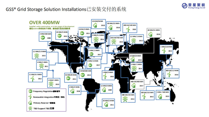 首先介紹一下普星聚能股份公司。普星聚能股份公司主要從事清潔能源的運(yùn)營(yíng)、管理和投資,是萬向公司旗下公司。公司于2002年在上海成立,注冊(cè)資金35億元人民幣。公司旗下還有上市公司以及清潔發(fā)電業(yè)務(wù)。借這個(gè)機(jī)會(huì)也介紹一下普星聚能的母公司萬向公司。萬向公司是總部位于杭州的一家汽車零部件制造企業(yè),現(xiàn)在萬向公司也在積極進(jìn)行轉(zhuǎn)型,向能源科技型公司轉(zhuǎn)型。業(yè)務(wù)發(fā)展方向從目前來看主要是下面五個(gè)方面:第一個(gè)就是電動(dòng)汽車,品牌是Karmar汽車;第二個(gè)是動(dòng)力電池,就是萬向123電池,這是萬向在收購(gòu)原美國(guó)A123系統(tǒng)公司基礎(chǔ)上整合和發(fā)展而來的;第三個(gè)就是電網(wǎng)儲(chǔ)能,這是今天要講的主要內(nèi)容,就是GSS®,這部分業(yè)務(wù)是與日本電氣NEC合資合作的;第四個(gè)就是清潔電力,這是香港的上市公司,還包括天然氣發(fā)電廠、風(fēng)力發(fā)電和光伏發(fā)電;最后一個(gè)是萬向創(chuàng)新聚能城,這是萬向的一個(gè)大項(xiàng)目,地點(diǎn)在杭州蕭山,上個(gè)月已經(jīng)啟動(dòng)建設(shè),新聞和媒體都有報(bào)道,大家感興趣的話可以關(guān)注一下。