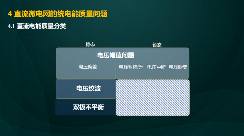 接下來(lái)我們分享一下目前我們?cè)谶@個(gè)標(biāo)準(zhǔn)當(dāng)中關(guān)于這個(gè)直流電的質(zhì)量相關(guān)的一些進(jìn)展,總體上面來(lái)說(shuō)我們覺得電流質(zhì)量問題,可以分為穩(wěn)態(tài)還有暫態(tài)兩種類型。