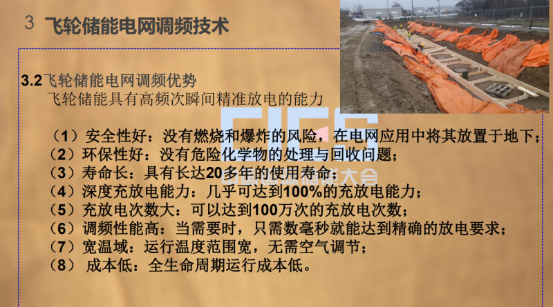 這個(gè)圖就是它用在傳統(tǒng)的火力發(fā)電和新能源發(fā)電調(diào)頻方面的優(yōu)勢(shì)。這里特別要講的,飛輪儲(chǔ)能和電池儲(chǔ)能結(jié)合起來,形成混合儲(chǔ)能,在調(diào)頻應(yīng)用中,將調(diào)頻拆解,有高頻需求和低頻需求,高頻需求由飛輪儲(chǔ)能承擔(dān),低頻需求由飛輪電池系統(tǒng)承擔(dān),充分發(fā)揮飛輪儲(chǔ)能的功率優(yōu)勢(shì)和電池儲(chǔ)能的能量?jī)?yōu)勢(shì)。提高系統(tǒng)的經(jīng)濟(jì)性、穩(wěn)定性和安全性,尤其對(duì)光伏發(fā)電、風(fēng)力發(fā)電輸出功率波動(dòng)的平抑,在電網(wǎng)的調(diào)頻調(diào)峰輔助服務(wù)方面具有廣闊的應(yīng)用前景。