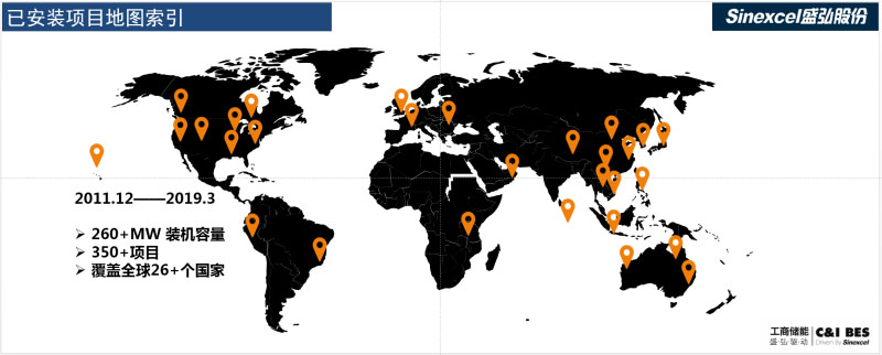目前在全球26個國家有350個以上的項目運行,這些都是實際的項目運行案例的地點。電網(wǎng)側(cè)我們有超過40兆瓦以上的項目運行,主要是500、600K的機器,去年河南電網(wǎng)、南網(wǎng)等在應(yīng)用。用戶側(cè)的分布式系統(tǒng),我們在30K的系統(tǒng)出貨超過1000套,主要在北美、南美、歐洲的一些國家在運行。用戶側(cè)的工商業(yè)這塊,總共裝機容量超過30兆瓦,這塊主要是50K—250K的功率,主要是在國外使用,用于需量管理和電力交易,它的經(jīng)濟價值比較好,有的項目大概3年收回成本。最后這塊針對無電地區(qū)和弱電地區(qū),現(xiàn)在有200套以上的微網(wǎng)電網(wǎng)在運行,主要是光、儲一體機,主要是緬甸、泰國、日本、非洲等一些國家。