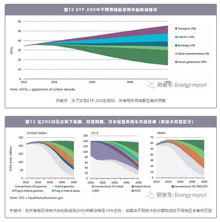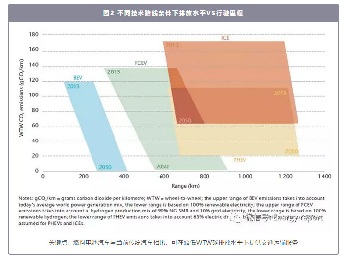 具有低碳足跡的氫有可能促進能源相關(guān)二氧化碳排放的顯著減少,并有助于將全球溫度上升控制在2°C以內(nèi),正如國際能源署能源技術(shù)展望(ETP)中描述的高氫發(fā)展2°C情景一樣。此外,與直接化石燃料燃燒相比,氫氣的使用可以降低局部空氣污染物排放和噪音污染。通過在2°C情景下繼續(xù)使用化石燃料資源滿足終端用能需求,氫氣與CCS結(jié)合可以提供保障能源安全的措施并幫助維持多樣化的燃料組合。