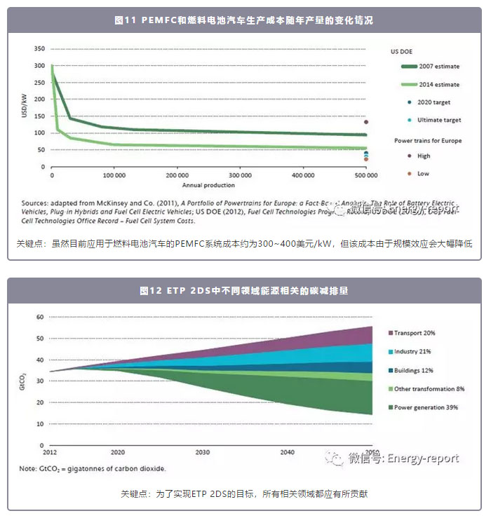 燃料電池汽車可以替代當今傳統(tǒng)汽車提供碳排放量極低的出行和運輸服務(wù)。到2050年,在公路運輸中部署25%的燃料電池汽車比例可以貢獻高達10%的累計運輸相關(guān)碳減排量,促使ETP 6°C情景(6DS)轉(zhuǎn)變?yōu)?DS,具體減排程度取決于不同地區(qū)的情況。假設(shè)燃料電池汽車銷售快速增長,在推出首批10000輛燃料電池汽車后,預(yù)計15~20年內(nèi)將形成一個自我維持的市場。