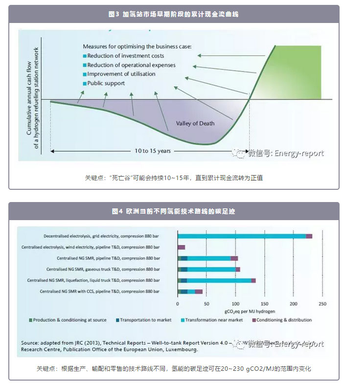 雖然氫和燃料電池在終端用能領(lǐng)域具有很大的發(fā)展空間和能源安全優(yōu)勢,但氫氣發(fā)電、輸配和零售基礎(chǔ)設(shè)施的發(fā)展仍具有挑戰(zhàn)性。例如,燃料電池汽車市場發(fā)展相關(guān)的風險一直是基礎(chǔ)設(shè)施投資的重大障礙。對于從現(xiàn)在到2050年之間假定銷售1.5億輛燃料電池汽車中的每一輛,根據(jù)地區(qū)的不同,需要花費900~1900美元用于氫氣基礎(chǔ)設(shè)施的開發(fā)。1