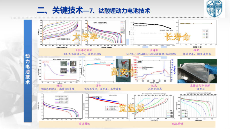 對(duì)此,我們針對(duì)軌道交通,開展燃料電池系統(tǒng),還有能量管理控制器的研制。不同于汽車,為降低成本,控制器都是基于單片機(jī),而軌道交通,更關(guān)注可靠性,因此我們基于PLC進(jìn)行開發(fā)。另外就是動(dòng)力電池方面,儲(chǔ)能方面,因?yàn)檐壍澜煌▽?duì)于安全的要求是非常高的。大家也知道,7.23事故,影響非常大。安全對(duì)軌道交通來說是壓倒一切,所以我們不會(huì)考慮在軌道交通上面使用三元甚至磷酸鐵鋰。目前我們只選擇鈦酸鋰電池,主要是基于它的安全性。聯(lián)合一些電池的生產(chǎn)廠家,做一些專門針對(duì)軌道交通的儲(chǔ)能系統(tǒng)研發(fā)。我們主要關(guān)注大倍率,因?yàn)檐壍澜煌〝?shù)秒有上千安的電流變化,所以必須大倍率。這個(gè)火車,可能從南開到北,一年四季,氣候變化非常大,也要求具有很好的溫度適用性。電芯是跟四川國創(chuàng)成來合作,我們學(xué)校主要做四大管理,就是熱管理、均衡管理、安全管理和壽命管理。