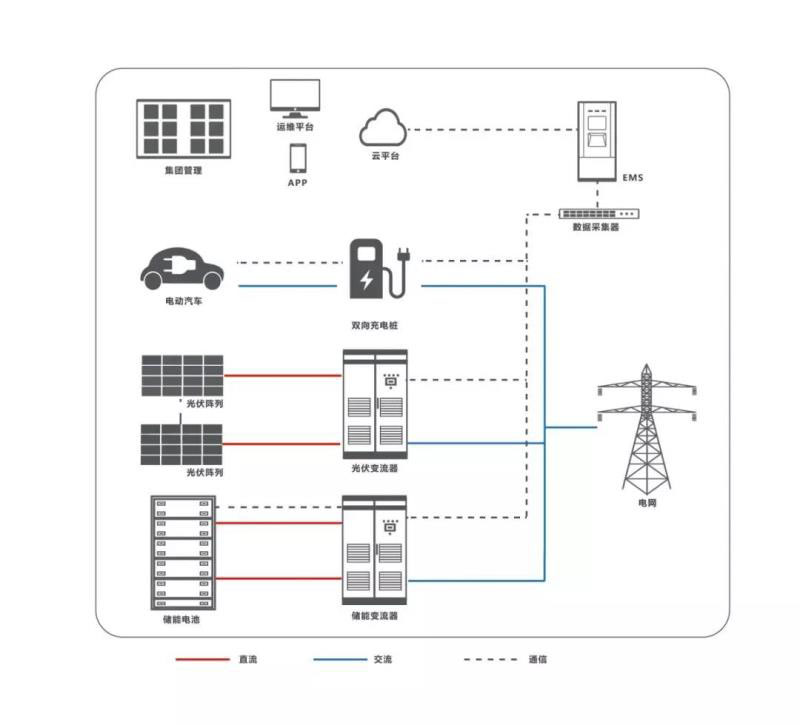 光伏、儲能和充電設(shè)施形成了一個光儲充微網(wǎng)系統(tǒng),整個系統(tǒng)與公共電網(wǎng)智能互動,并可實現(xiàn)并、離網(wǎng)兩種不同運行模式,既為電動汽車供給綠色電能,又實現(xiàn)電力削峰填谷等輔助服務(wù)功能,極大提升了整個系統(tǒng)的運行效率和經(jīng)濟(jì)效益。