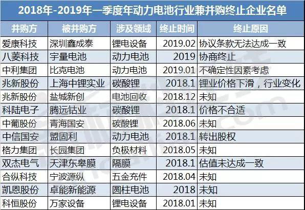 根據(jù)上市公司公開披露資料,2018年,中國動力電池行業(yè)終止的兼并購案例就達(dá)到10起,而今年一季度被終止的并購案例就達(dá)到3起。