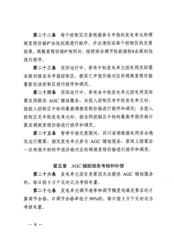 中國儲能網(wǎng)訊:5月17日,四川能監(jiān)辦、四川省工信廳聯(lián)合印發(fā)《四川自動發(fā)電控制輔助服務(wù)市場交易細(xì)則(試行)》,標(biāo)志著四川AGC輔助服務(wù)市場正式啟動。
