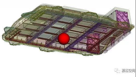 動(dòng)力電池上蓋對(duì)碰撞防護(hù)無貢獻(xiàn),可盡量做輕薄,必要時(shí)大于30Hz的上蓋模態(tài)頻率指標(biāo)要求也可放松。為應(yīng)對(duì)車輛底部傳來的撞擊,下殼體要有足夠的剛強(qiáng)度,建議用底部球擊工況來考察。