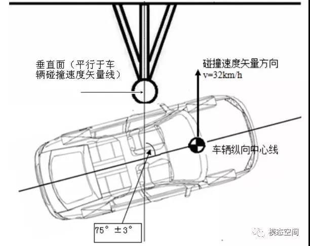 當(dāng)車輛出現(xiàn)不可控的旋轉(zhuǎn)時(shí),車輛側(cè)面可能與樹木或電線桿等柱狀物碰撞,對(duì)于乘員和動(dòng)力電池都極其危險(xiǎn),圖4所示的32公里側(cè)柱碰工況(GB/T37337-2019)模擬的就是這種場景。