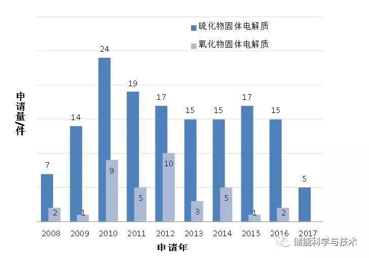 圖3豐田在硫化物和氧 化物固體電解質(zhì)上的專利申請(qǐng)趨勢(shì)