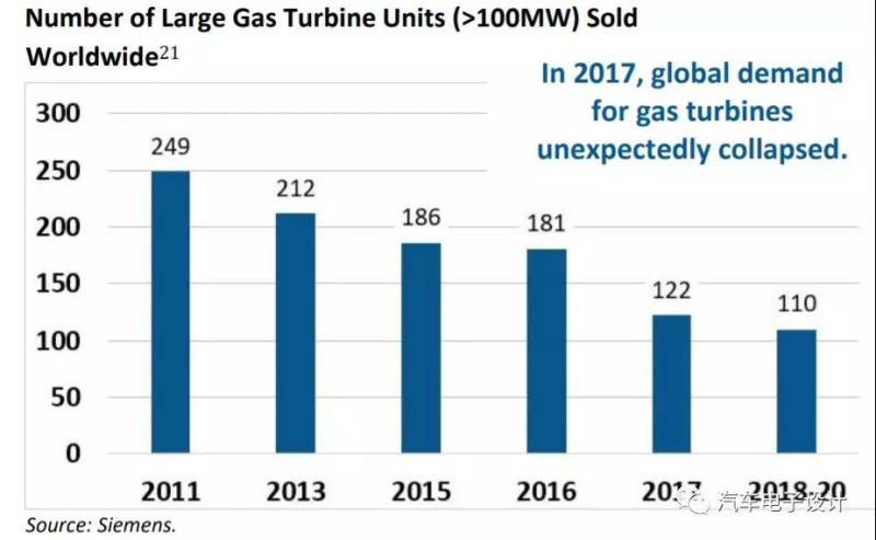 世界不隨一家公司的想法所轉(zhuǎn)移,在2017年拐點出現(xiàn)了,全球燃?xì)廨啓C(jī)的需求出現(xiàn)大幅度的滑坡。以至于在面向投資者的年初預(yù)測和當(dāng)年的實際裝機(jī)出現(xiàn)了打臉的數(shù)據(jù)。