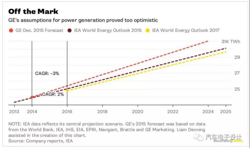 這批并購不僅買貴了,還直接導(dǎo)致通用電氣后續(xù)決策。隨著2015年11月阿爾斯通收購?fù)瓿?,通用電氣擴(kuò)大了對火電市場的投資。通用電氣成為是世界燃?xì)廨啓C(jī)的領(lǐng)導(dǎo)者,GE,西門子和三菱日立控制大約80%全球天然氣渦輪機(jī)的市場。 GE這個系列的業(yè)務(wù)產(chǎn)生了全球1/3的電力。這也助長了GE內(nèi)部對于未來電力需求的增長過渡樂觀的預(yù)測。