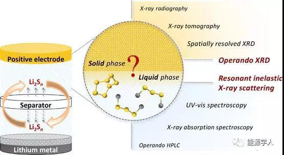 鋰-硫電池在電化學(xué)儲(chǔ)能應(yīng)用中的高能量密度是基于硫的高理論比電荷。但到目前為止,鋰-硫電池的商業(yè)化仍然受到阻礙,因?yàn)榉磻?yīng)機(jī)理的復(fù)雜性涉及一系列動(dòng)態(tài)變化的液固平衡。Operando技術(shù)被廣泛應(yīng)用于研究這些性能限制的相變;然而,它們往往在同時(shí)跟蹤和解決固、液相問(wèn)題上存在不足。本文,Mulhouse材料科學(xué)研究所J. Conder和C. Villevieille對(duì)該領(lǐng)域的研究成果進(jìn)行了總結(jié),并簡(jiǎn)要概述了用于鋰-硫電池的不同Operando技術(shù)的最新進(jìn)展(圖1),從而解決了單一技術(shù)是否可用于準(zhǔn)確研究固體和液體平衡的問(wèn)題。