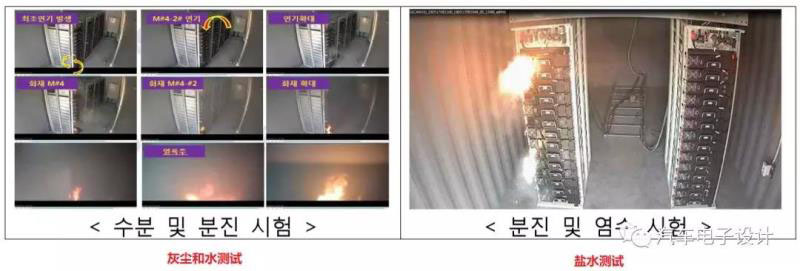 水分和粉塵測試:基于在空調(diào)周圍發(fā)現(xiàn)熔化痕跡的情況,通過模擬電池系統(tǒng)上的水分,灰塵和鹽水等環(huán)境來測試絕緣性能降低的可能性的結(jié)果, 性能惡化時(shí)發(fā)生火災(zāi)。